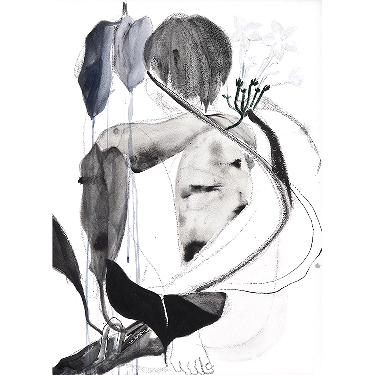 [김한별] 웅크린 사람 / 종이에 아크릴, 흑연, 납묵 / 76x56cm