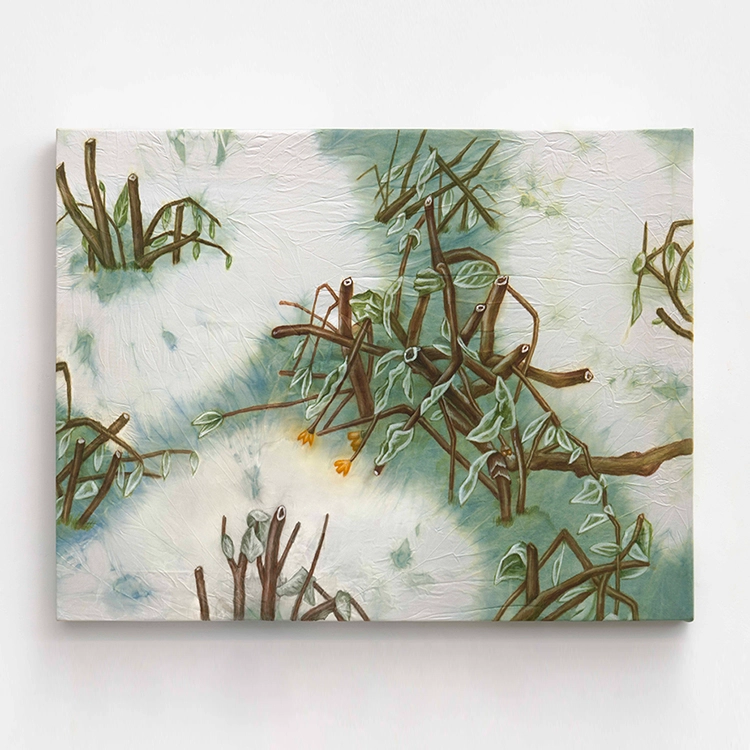 [설혜린] 12월의 쪽 / 염색된 실크 위에 수채화 / 40.9×53cm
