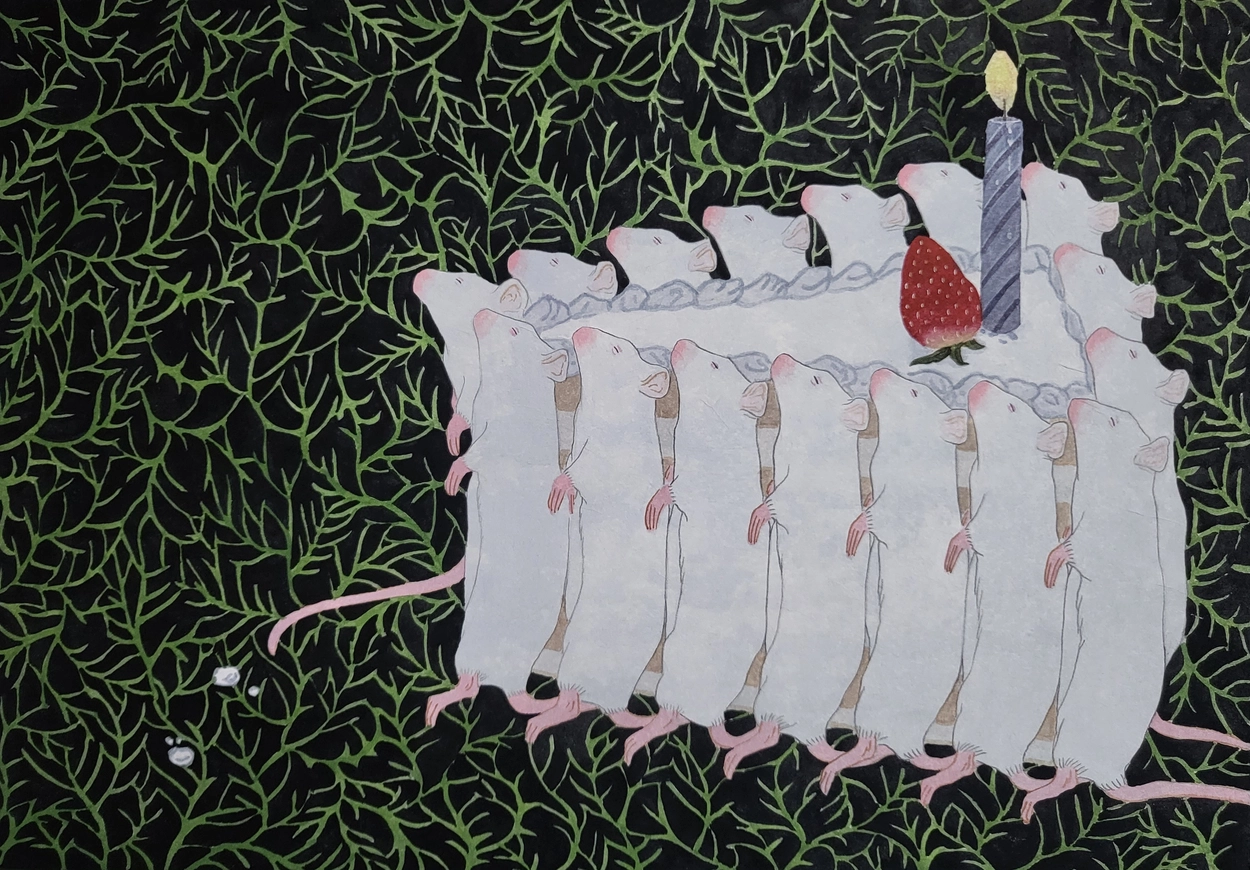 [이도소] 냉동 백쥐도 / 순지에 채색 / 109.5x36.5cm