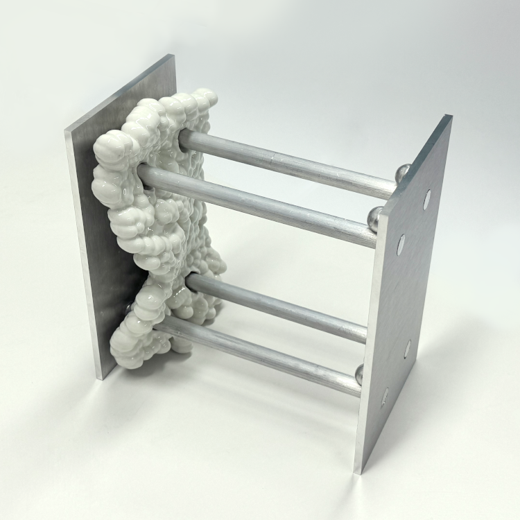[김수민] 전이 / 알루미늄, 볼트, 너트, 백자에 청하유 / 20x20x12cm